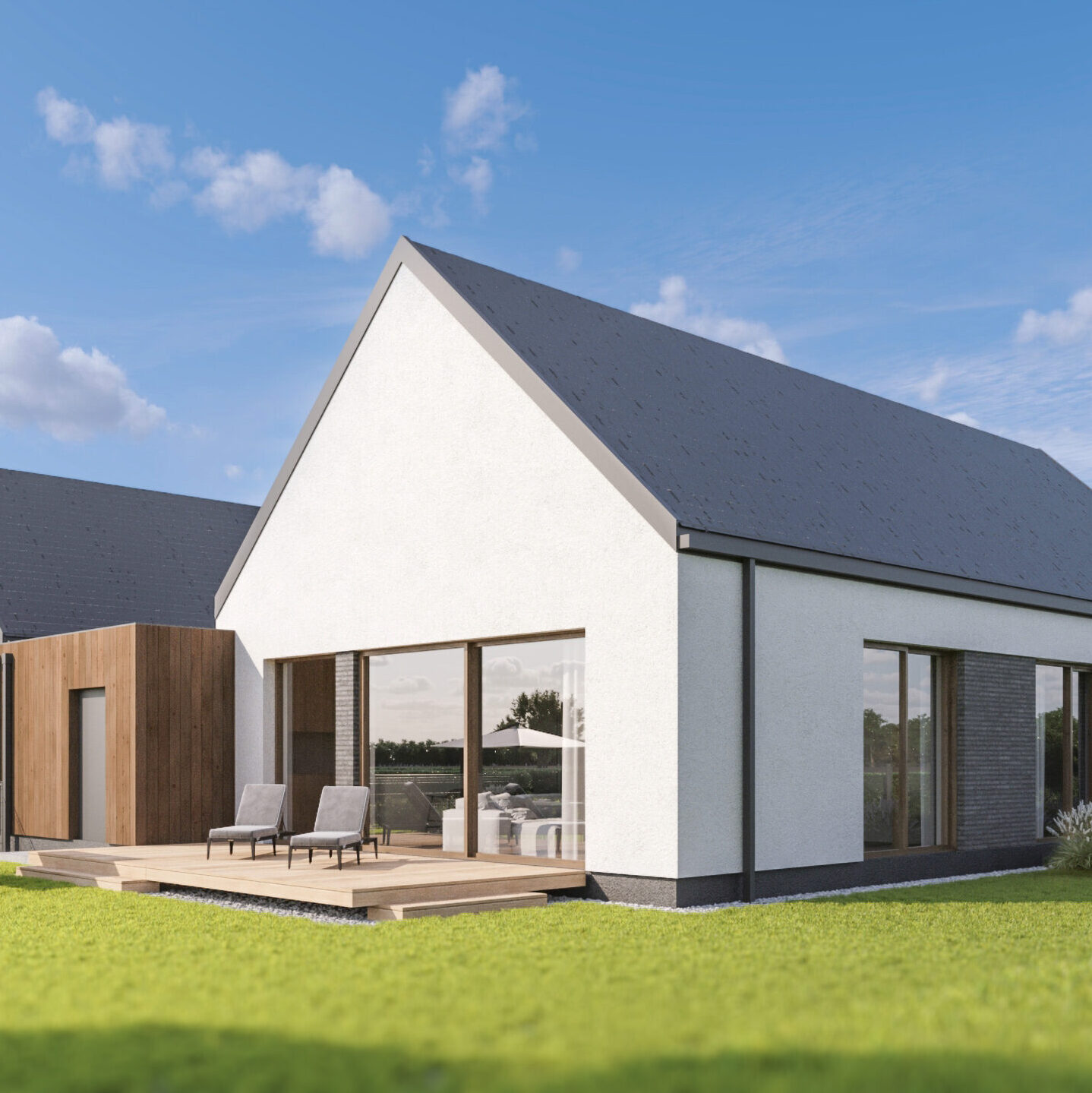 W 2025 roku oddaliśmy do użytku cztery budynki dwulokalowe o pow. 137,5 m2. Ogrzewane pompą ciepła z rekuperacją firmy BOSCH mają współczynnik energetyczny Ep=25 kWh/m2/rok